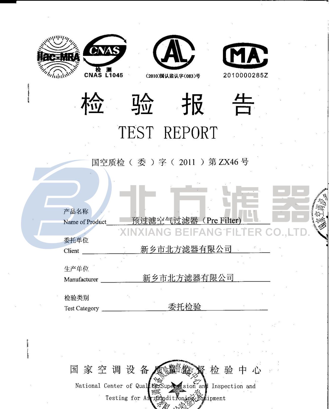 當前位置 : 主頁 > 關(guān)于我們 > 榮譽資質(zhì) -預(yù)過濾空氣過濾器檢測報告