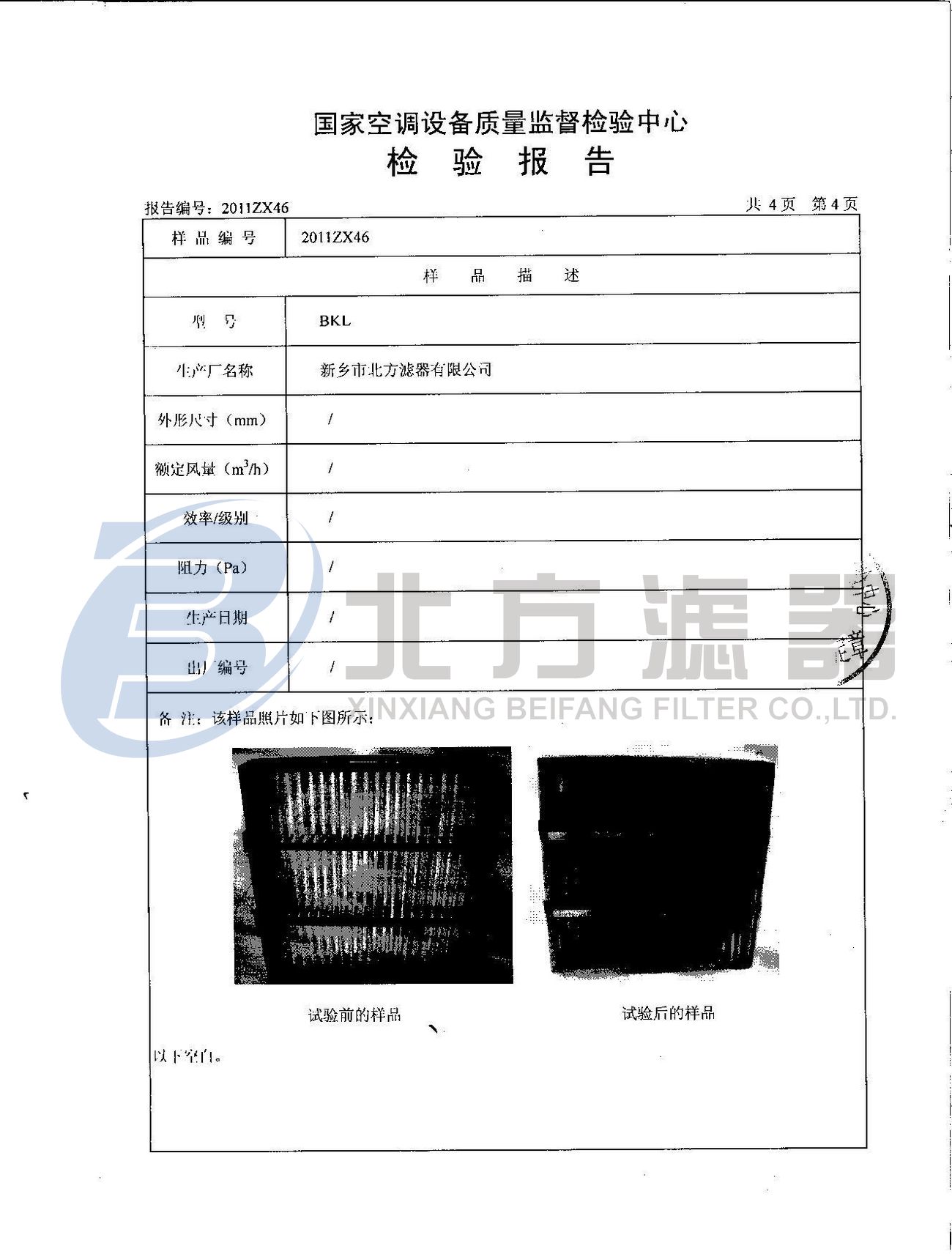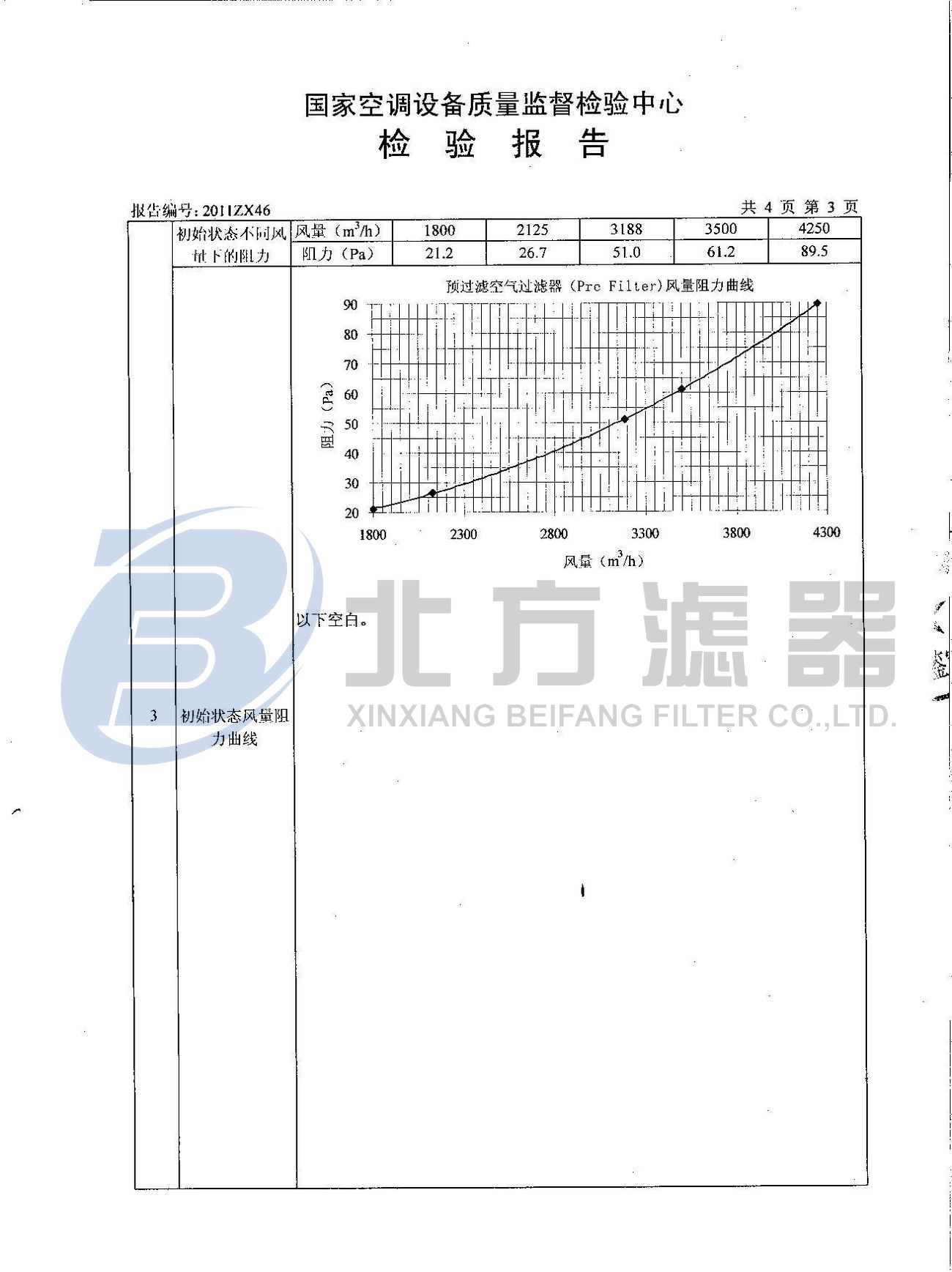 預(yù)過濾空氣過濾器檢測報告