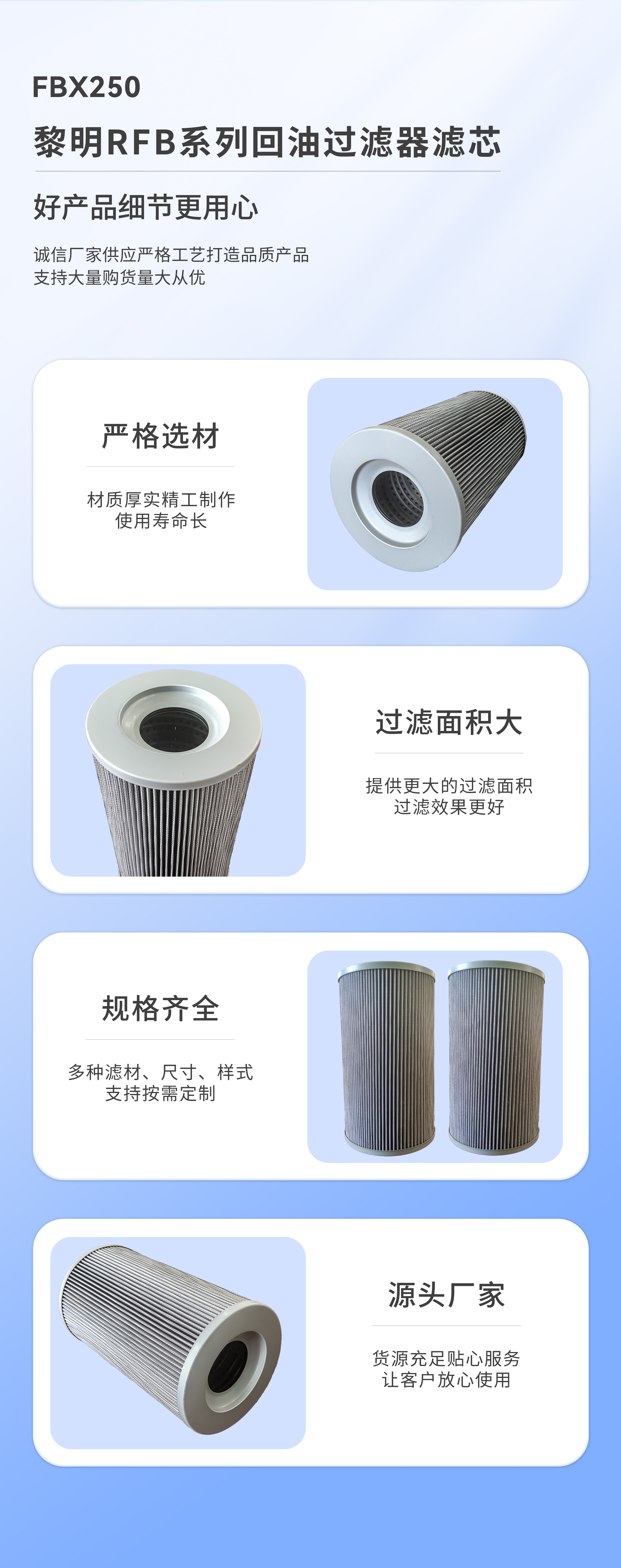【產(chǎn)品簡介】:濾芯的濾材一般都要做成波紋狀由3-5層折疊而成,采用濾材成型設備,這樣才能使多層復合纖維緊緊靠在支承網(wǎng)上,如果支承網(wǎng)與纖維濾材沒有靠死,就說明它制作工藝欠佳。黎明FBX250回油過濾器濾芯 流量:250L/min 精度:1、3、5、10、20、30微米可選。